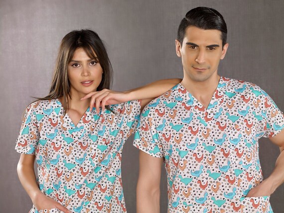 Dinosaur Patterned 100 Cotton Scrub Top Unisex V Neck Nurse Etsy Canada